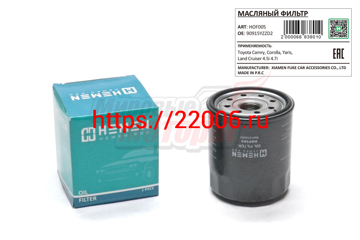 - Фильтр масляный Toyota Camry, Corolla, Yaris, Land Cruiser 4.5i 4.7i (HOF005) в Богдановиче недорого