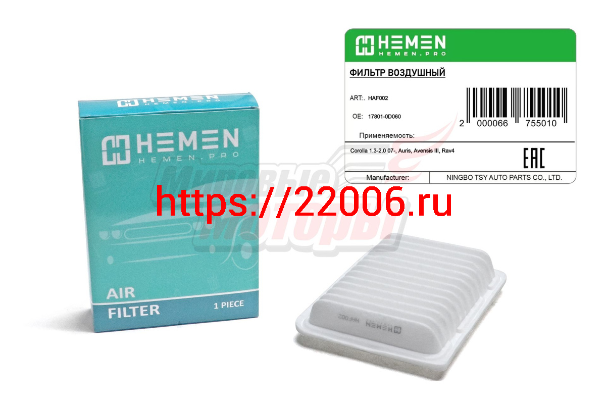 - Фильтр воздушный Toyota Corolla 1.3-2.0 07-, Auris, Avensis III, Rav4 (HAF002) в Богдановиче недорого