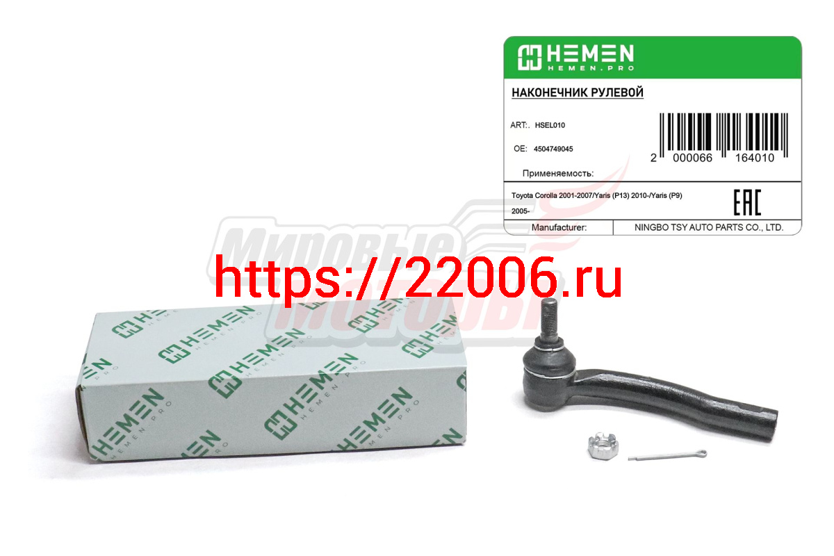 - Наконечник рулевой левый Toyota Corolla 02-, Yaris 05- (HSEL010) в Богдановиче недорого