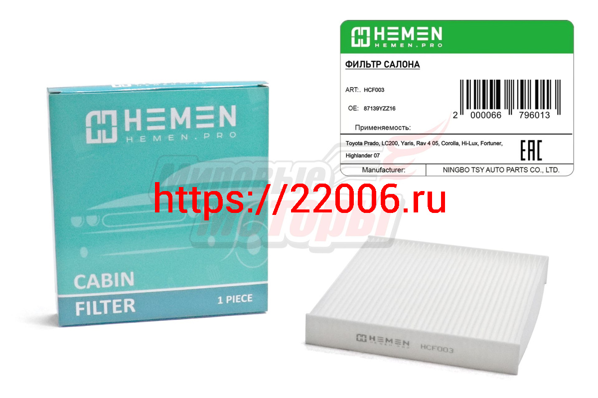 - Фильтр салона Toyota Prado, LC200, Yaris, Rav 4 05, Corolla, Hi-Lux, Fortuner, Highlander 07 (HCF003) в Богдановиче недорого